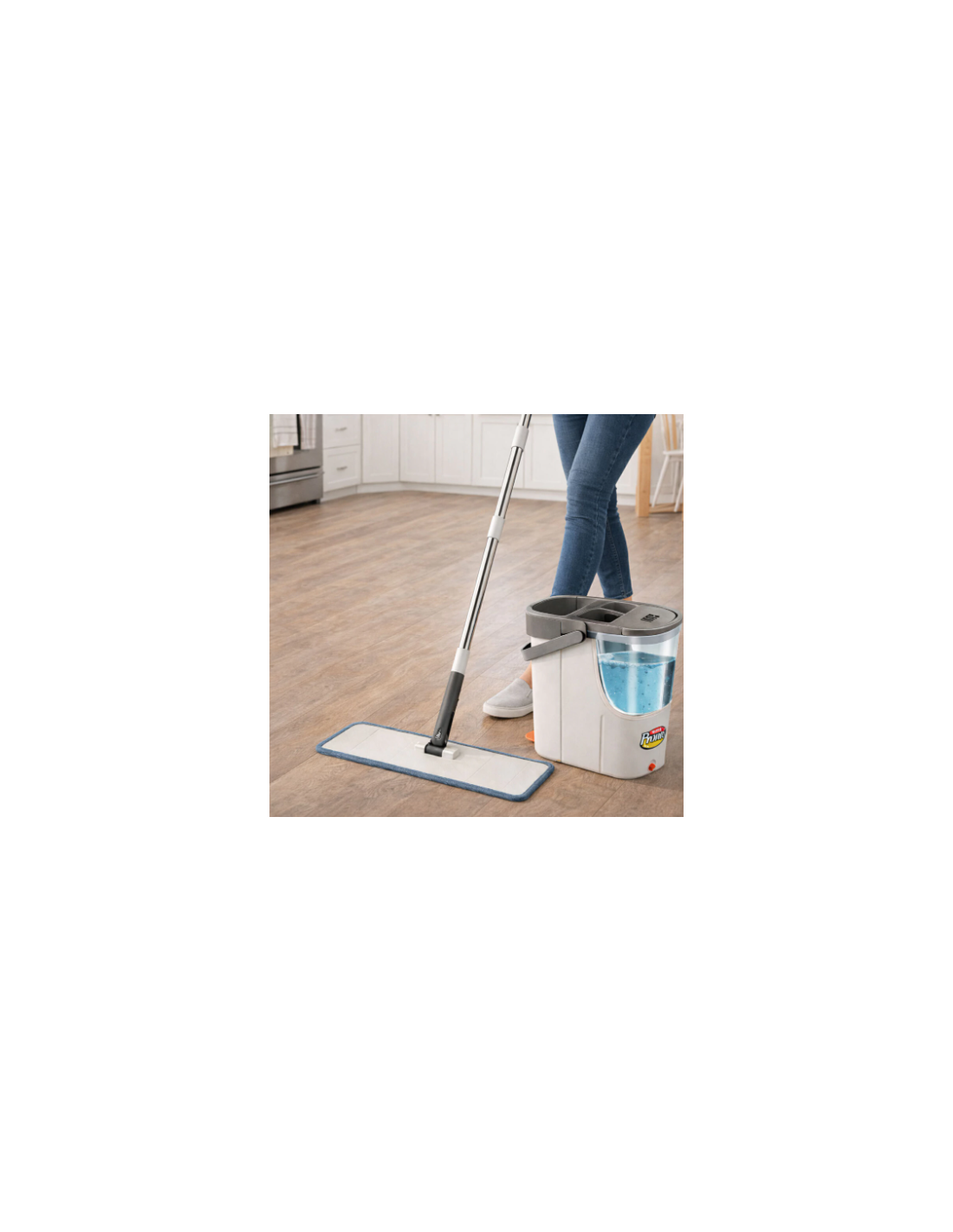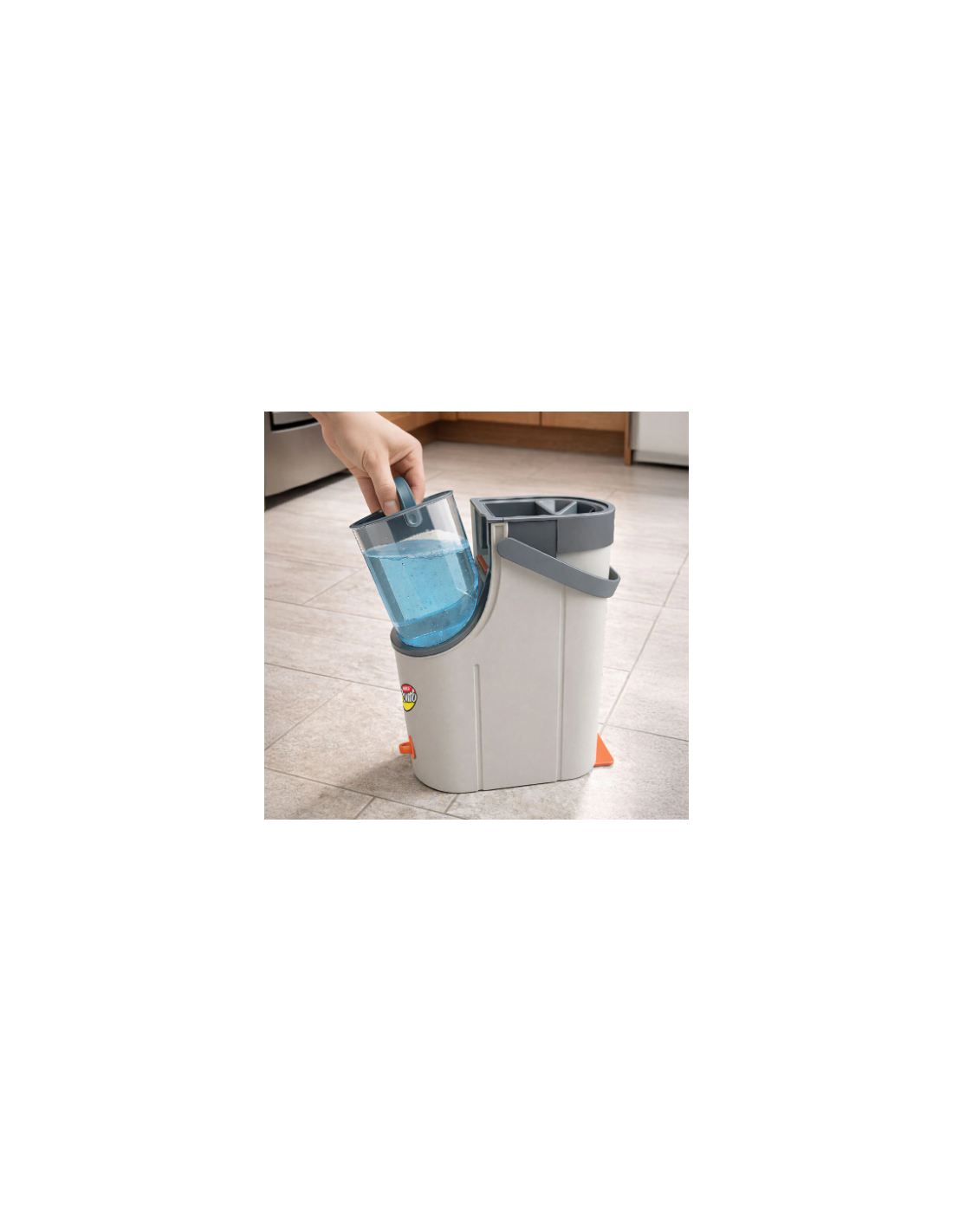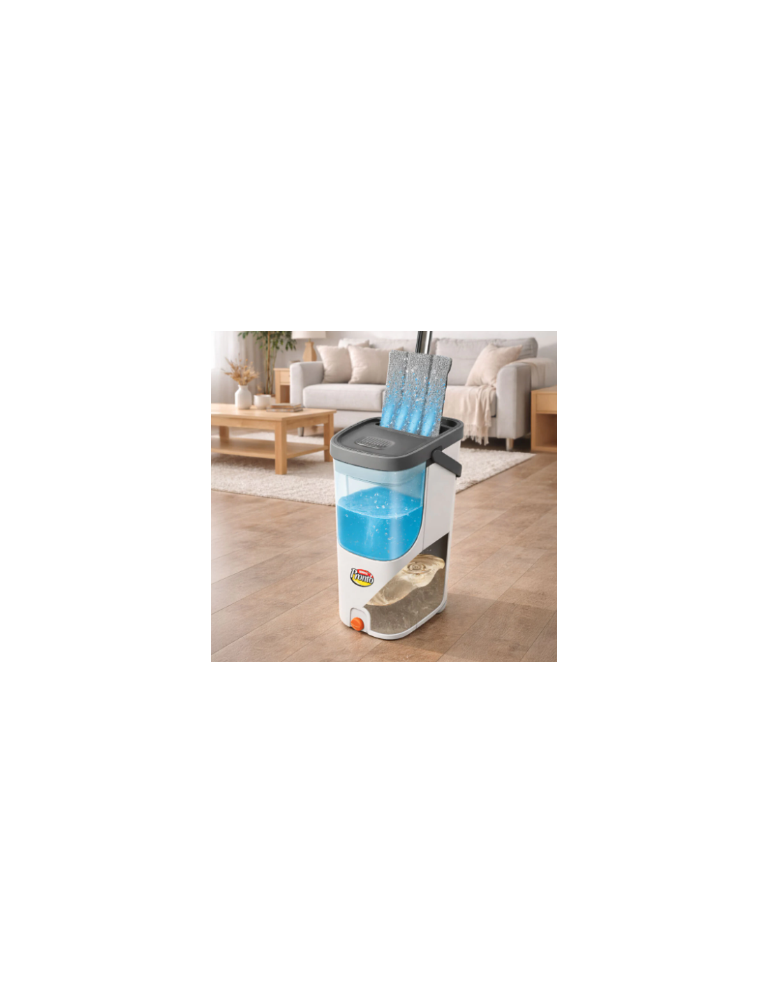 Sistema de Doble Tanque: separa el agua limpia del agua sucia al 100%, asegurando que la mopa siempre limpie con agua fresca.